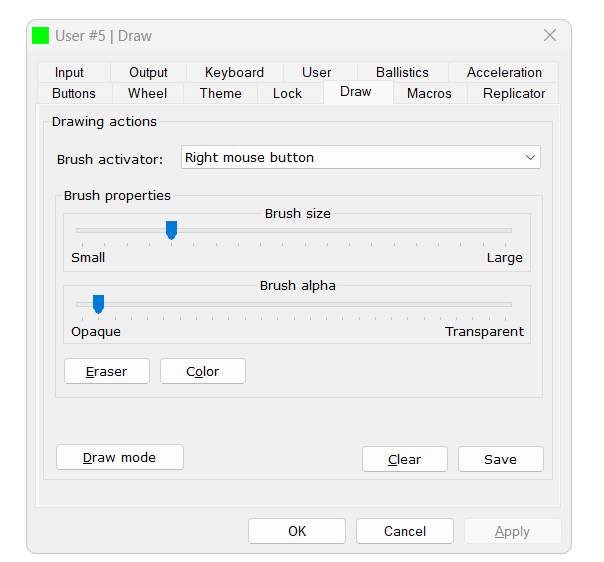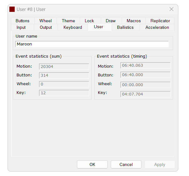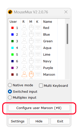 Opening the configuration for any user can also be done by double left clicking the user number/color in the main window.