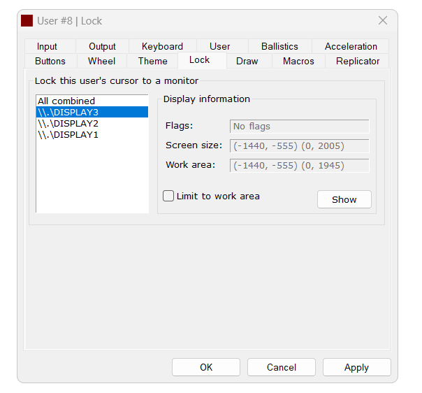 By seperating the loading & saving options MouseMux allows you to load a specific configuration each time without overwriting it.