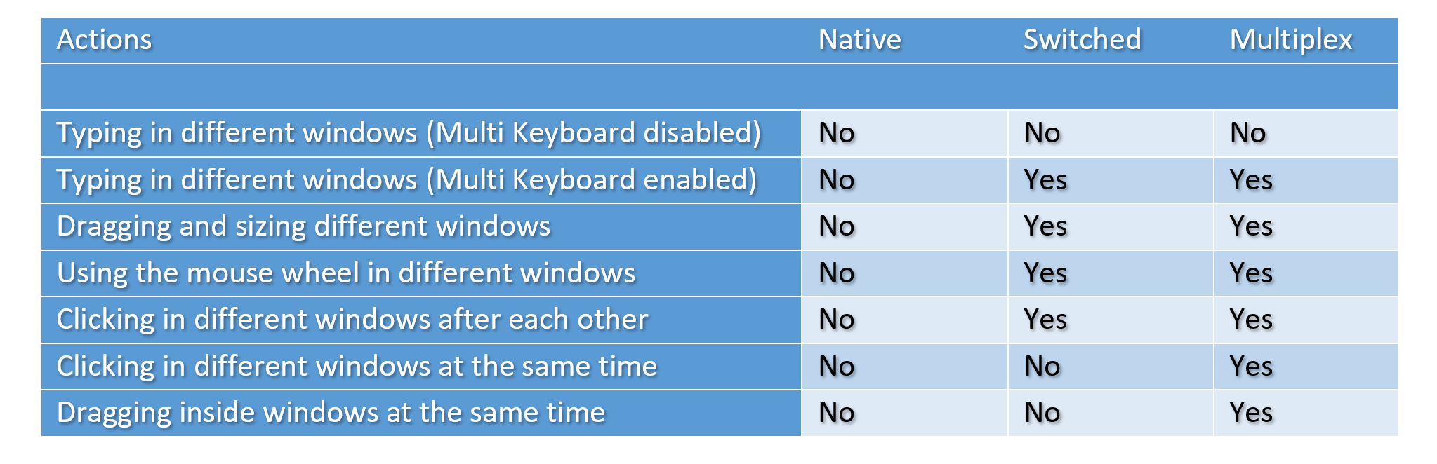 Users can drag or resize windows simultaneously and users can also type in different windows at the same time by enabling the multi keyboard option.